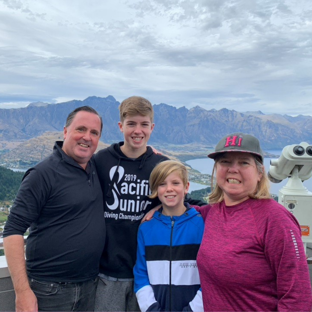 Three weeks before Fiona passed away, sons Cameron and Ross competed in the National Diving Championships. Christopher spent the weekend downloading videos of their events and showing Fiona. The boys returned with several medals and Ross won a trophy for the best performance in his age group.